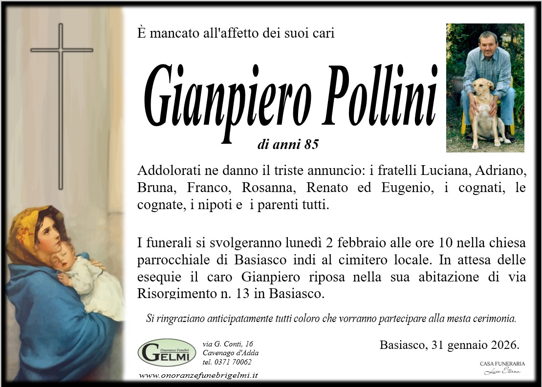 I funerali si svolgeranno in Basiasco di Mairago lunedì 2 febbraio alle ore 10.00