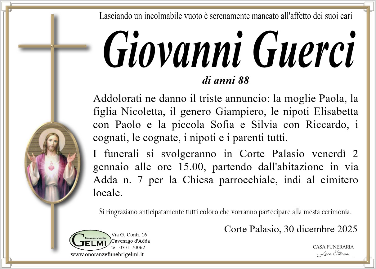 I funerali si svolgeranno in Corte Palasio venerdì 2 gennaio alle ore 15.00