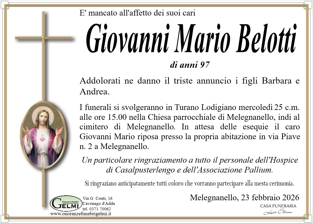 I funerali si svolgeranno in Melegnanello mercoledì 25 c.m. alle ore 15.00