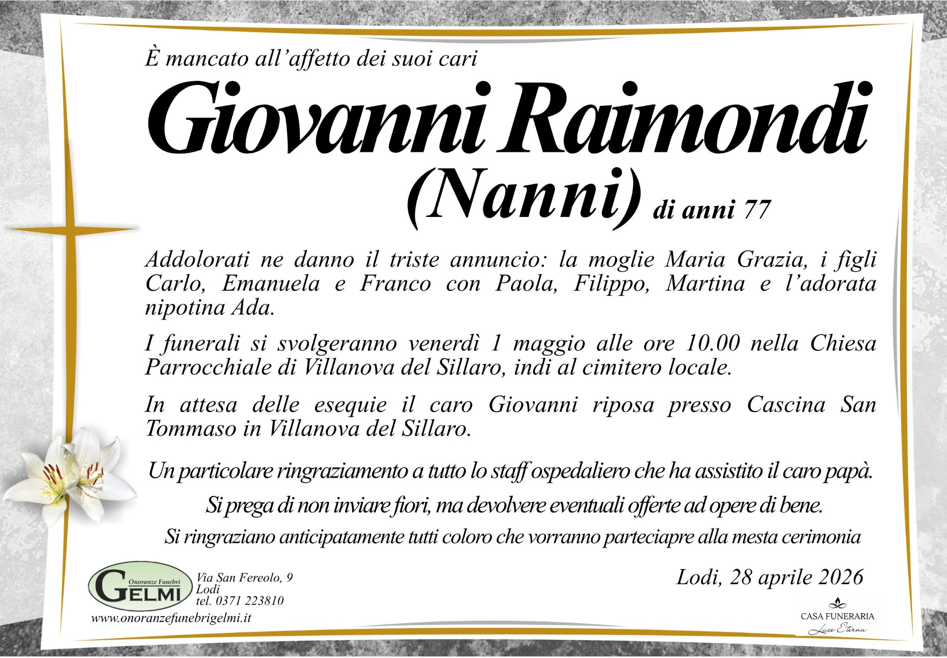 LUTTO GIOVANNI RAIMONDI (Nanni)