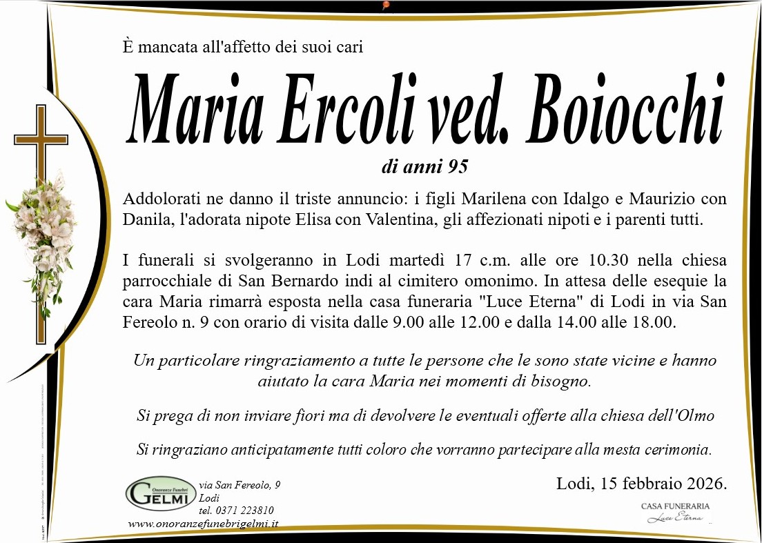 I funerali si svolgeranno in Lodi martedì 17 c.m. alle ore 10.30