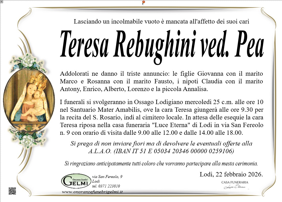 LUTTO TERESA REBUGHINI VED. PEA